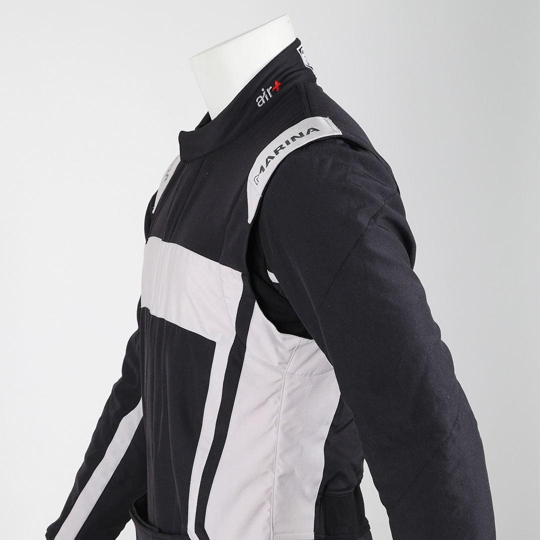 The Air+ racing suit is made for drivers who need strong protection and good breathability in hard conditions.It is FIA 8856-2018 approved and made with special fire retardant fabric from Marina Racewear. It protects the driver and keeps them comfortable on track.