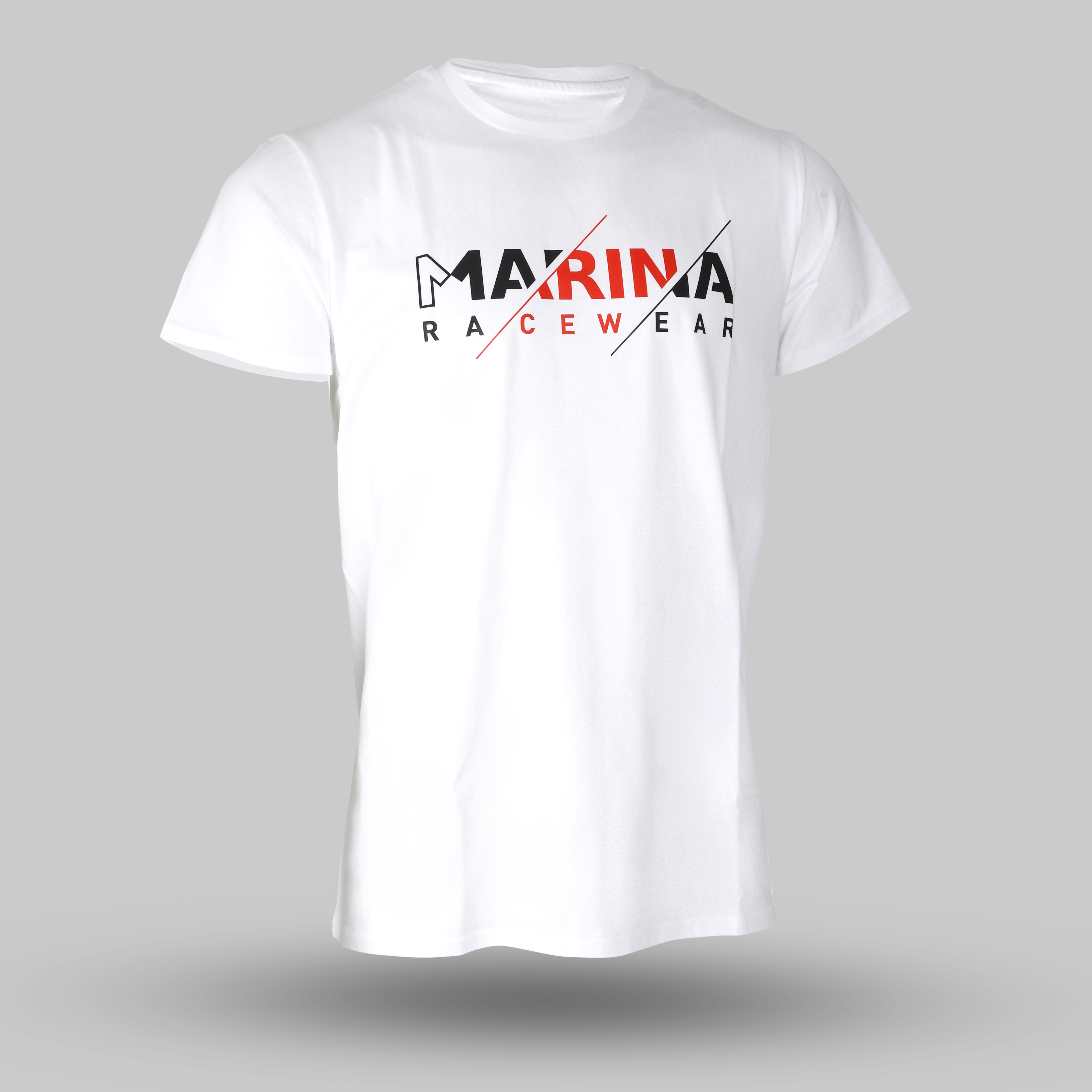Inscription: Marina Racewear on chest and Marina logo on back.